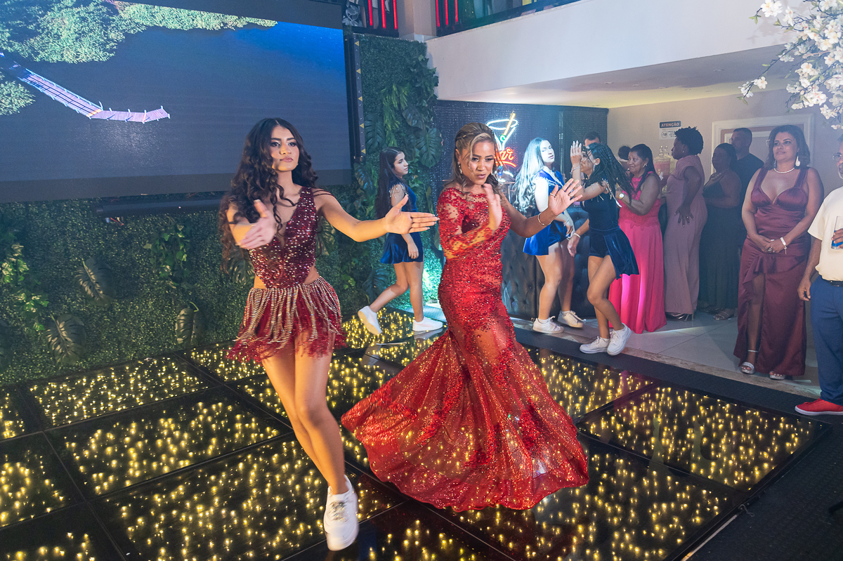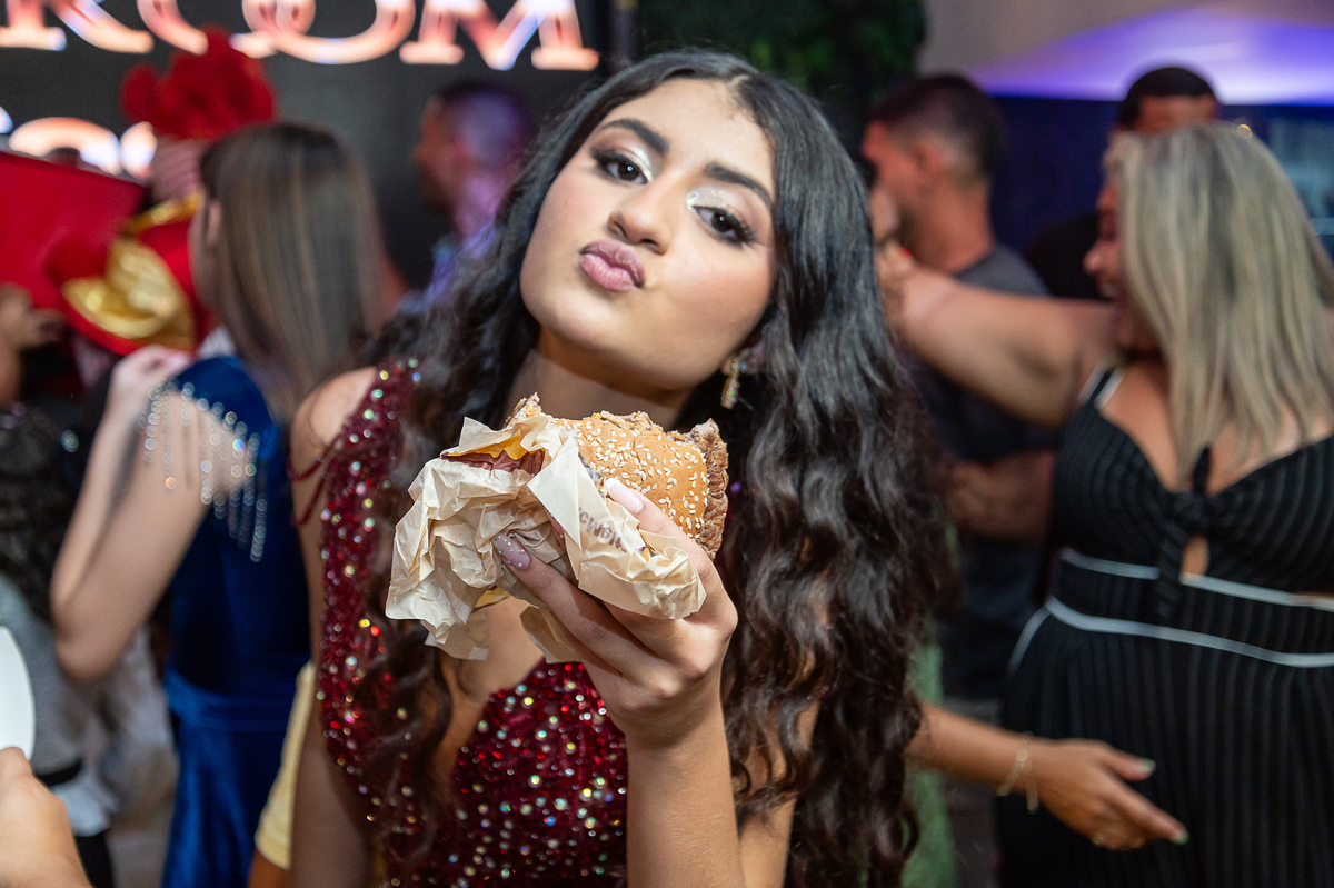"Dhully, aos 15 anos, brilha como uma estrela em uma noite cheia de sonhos e magia. Que fase essa é tão inesquecível quanto cada sorriso capturado!